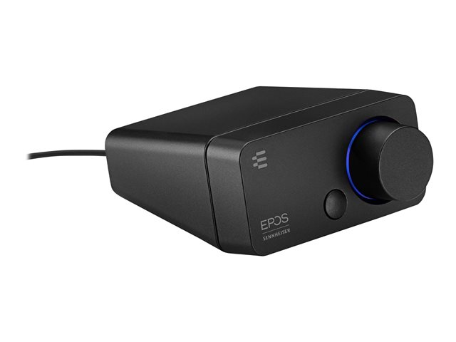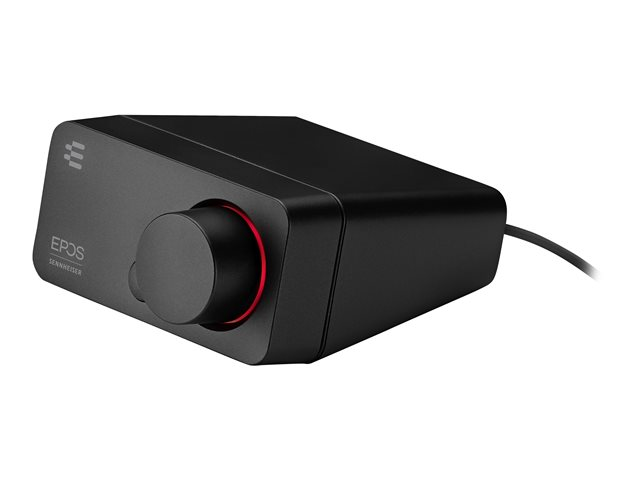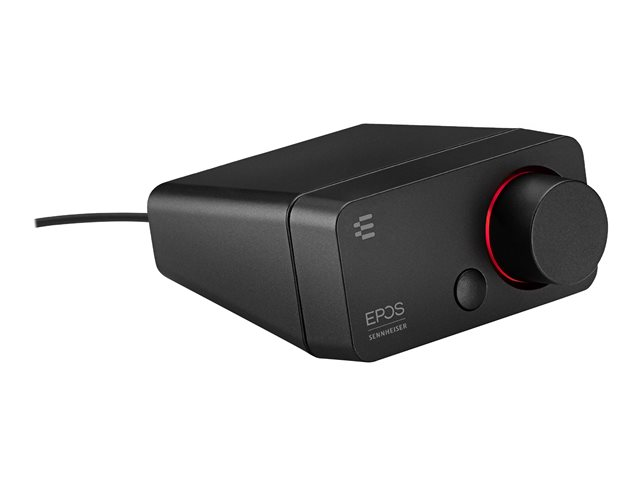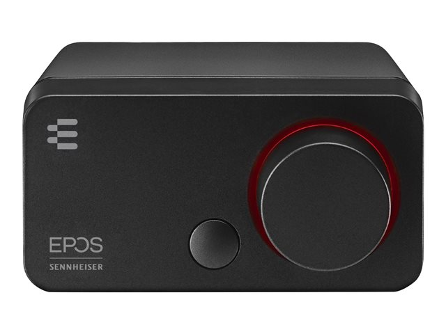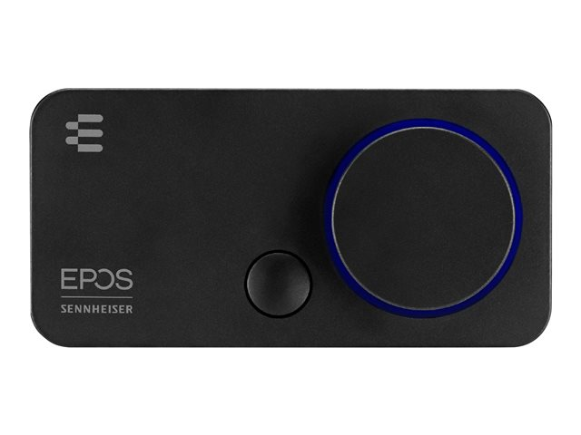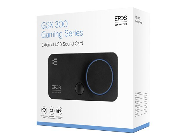 La GSX 300 constitue une excellente solution pour les joueurs en quête de performances audio améliorées, qui ne souhaitent pas utiliser la carte son de leur PC. Associée à un casque gaming, la carte GSX 300 combinée à la Gaming Suite EPOS offre un excellent traitement numérique du son ainsi qu'un son surround 7.1 EPOS personnalisable. L'anneau LED autour du bouton de réglage du volume s'allume en bleu avec le son 2.0, en rouge en mode 7.1.