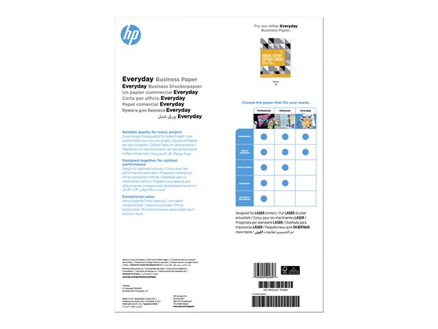 Imprimez aisément vos projets et donnez-leur une apparence professionnelle recto et verso. Le papier professionnel HP Everyday Business, finition brillante, est certifié FSC et permet d'obtenir des textes noirs nets et des graphiques aux couleurs vives, tout en offrant un excellent rapport qualité-prix.