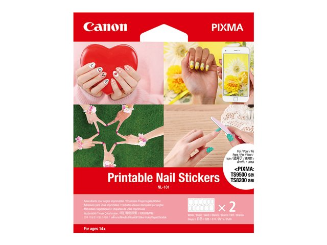 Soyez imaginatif et créez vos propres motifs " nail art " grâce à ce papier adhésif novateur pour les ongles. Avec 12 autocollants par feuille, vous pouvez immédiatement imprimer vos motifs à l'aide des bacs multifonctions des modèles PIXMA TS9550, PIXMA TS9551C, PIXMA TS8250, PIXMA TS8251 et PIXMA TS8252 et impressionner vos amis avec vos créations inspirées. Créez vos autocollants pour ongles à l'aide de l'application dédiée incluse, et choisissez parmi des centaines de motifs. Pour encore plus d'effet, téléchargez vos propres photos, offrant un résultat vraiment personnalisé. Une fois ces autocollants imprimés, il suffit de les coller sur les ongles, puis de les recouvrir d'un " top coat " pour obtenir un rendu instantané.