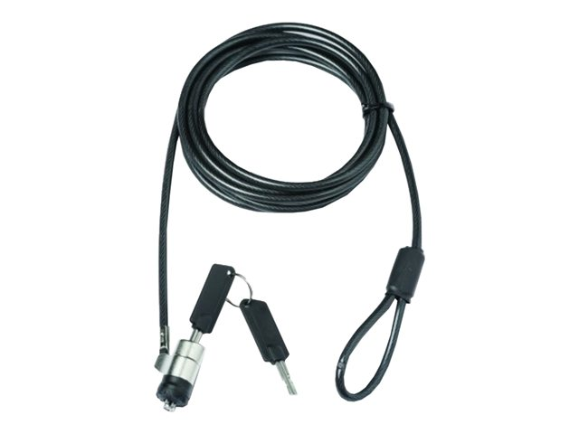 Description du produit DICOTA Lock Pro Single Versio - câble de sécurité Type de produit Câble de sécurité Contenu de l'emballage 2 clés Matériau du produit Acier Longueur 2 m Poids 100 g Caractéristiques Rotation à 360 degrés autour du câble -