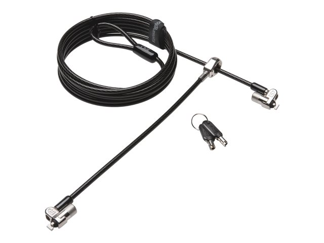 Description du produit Kensington MicroSaver 2.0 Keyed Twin Laptop Lock - câble de sécurité Type de produit Câble de sécurité Contenu de l'emballage Verrouillage de câble Matériau du produit Acier au carbone Caractéristiques Verou T-bar, réglage du pivot, broche cachée, rotatif, slot de sécurité Kensington -