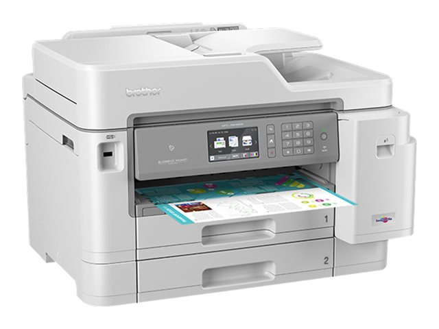 Le MFC-J5945DW répond à tous les besoins des entreprises grâce à des performances fiables et de haute qualité. Imprimez jusqu'au format A3, et facilitez vos numérisations et copies avec le chargeur automatique de documents A4 d'une capacité de 50 feuilles, vous permettant d'être plus productif dans vos activités quotidiennes. Avec son écran couleur tactile de 9,3 cm, ce multifonction jet d'encre couleur 4-en-1 vous permet d'accéder facilement aux fonctionnalités dont vous avez besoin pour votre entreprise.