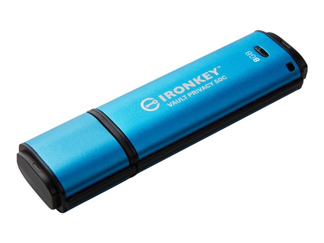 Les clés Kingston IronKey Vault Privacy 50 sont des clés USB Type-A et USB Type-C haut de gamme qui offrent une sécurité de niveau entreprise avec un chiffrement matériel AES 256 bits certifié FIPS 197 en mode XTS, incluant des protections contre les BadUSB avec des firmwares signés numériquement et contre les attaques par mot de passe Brute Force. Le VP50 a fait l'objet d'un test de pénétration (Pen Tested) pour une sécurité de niveau entreprise. Parce qu'il s'agit d'un stockage crypté sous le contrôle physique de l'utilisateur, la série VP50 est supérieure à l'utilisation d'Internet et des services en nuage pour protéger les données.