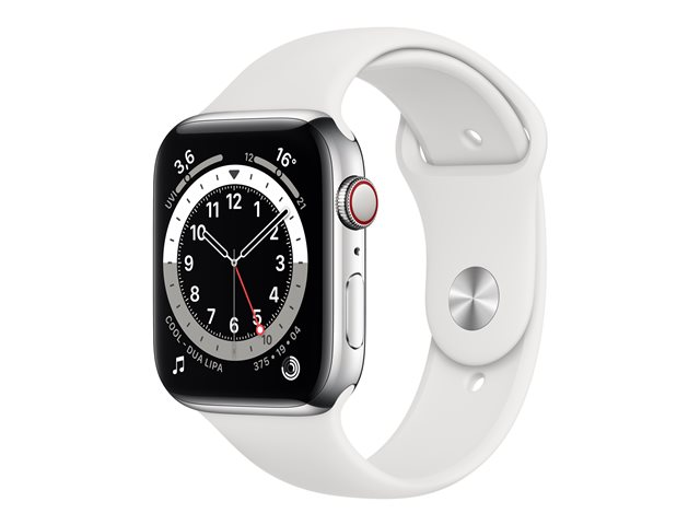 44 mm - acier inoxydable argent - montre intelligente avec bande sport - fluoroélastomère - blanc - taille du bracelet : S/M/L - 32 Go - Wi-Fi, Bluetooth - 4G - 47.1 g
