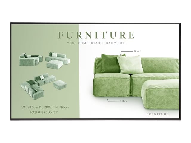 L'écran de signalisation UHD, doté de la plateforme LG webOS et d'une sécurité avancée, offre une résolution quatre fois supérieure à la Full HD, ce qui satisfait les clients sur le plan visuel. En outre, le revêtement antireflet de l'écran réduit les reflets de l'écran dans les environnements à forte luminosité, ce qui améliore la visibilité et la lisibilité, offrant ainsi aux clients un écran confortable.