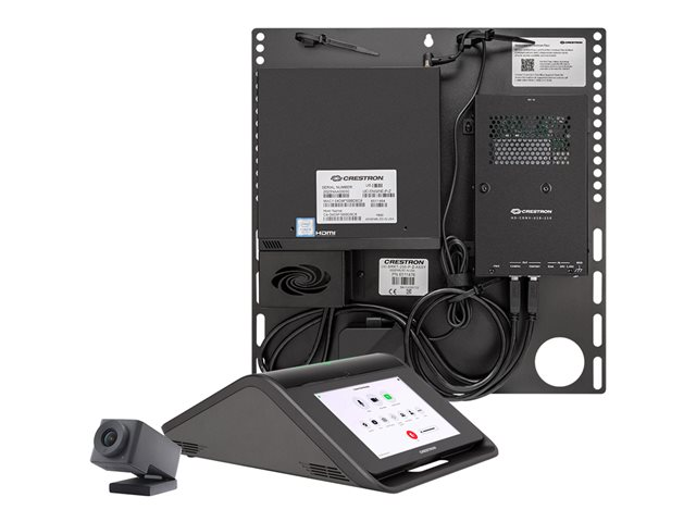 Le système UC-MX50-Z constitue une solution complète de salle de vidéoconférence à utiliser avec le logiciel Zoom Rooms. Il prend en charge un ou deux écrans vidéo et comprend le dispositif de conférence de table Crestron Flex, l'ensemble de supports UC avec UC-ENGINE, une caméra de collaboration, des câbles et un bloc d'alimentation.