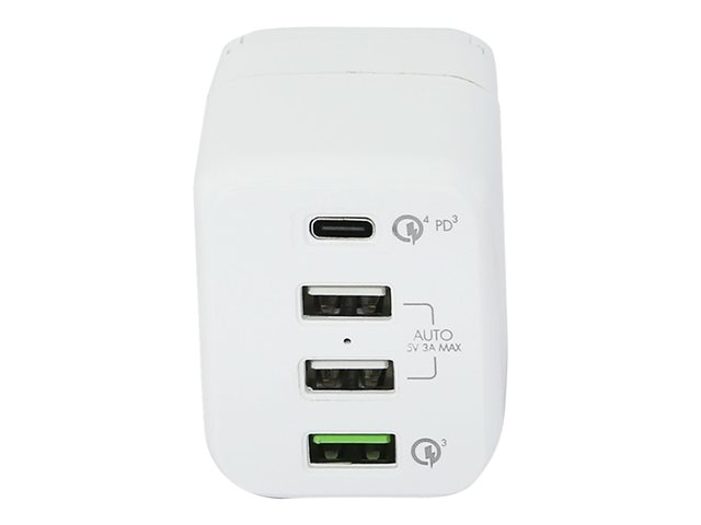 Avec l'Universal Travel Notebook Charger USB-C très compact vous vous disposez à tout moment d'une alimentation correcte en énergie. Les deux ports USB de type A et le port USB de type C vous permettent de charger simultanément jusqu'à trois appareils mobiles à l'aide d'une seule unité d'alimentation. Trois embouts de voyage échangeables fournissent de l'électricité dans plus de 200 pays et régions - avec une puissance de sortie de 45 W.