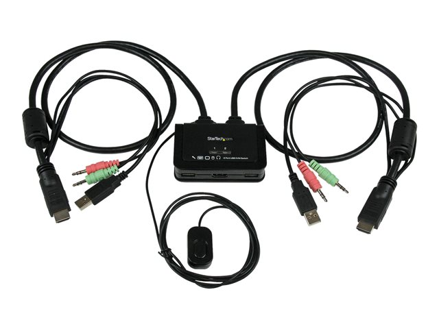 Le commutateur KVM HDMI à câble 2 ports avec audio et commutation distante SV211HDUA vous permet de contrôler 2 PC compatibles HDMI, USB à l'aide d'un seul jeu d'écran, de clavier, de souris et de périphériques audio.